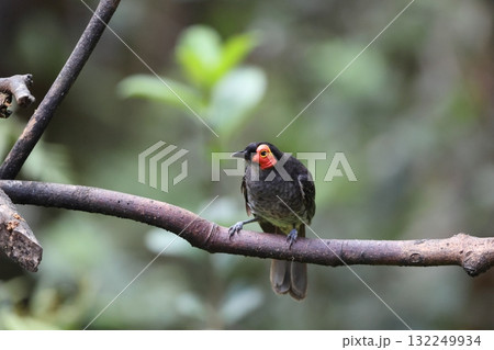 一隻黑頭太平鴿棲息在樹樁上,環顧四周。
