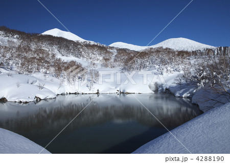 反映冬天的訪問的Himekuma和雪冠的Hakkoda