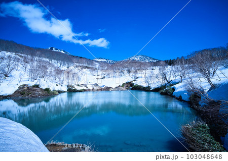 熱氣騰騰的八甲田十和田黃金線開通前的地獄沼(青森縣青森市)