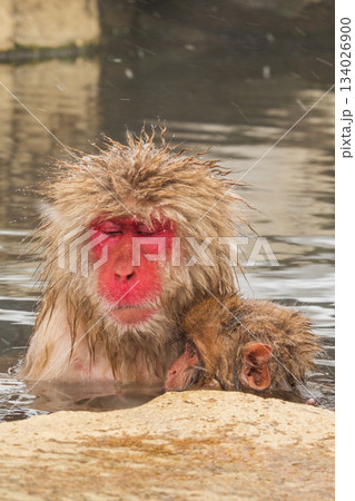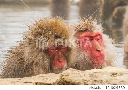 長野地獄谷猴園日本獼猴在溫泉中放鬆