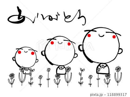父母和孩子 Jizo-san 畫筆觸摸手繪插圖