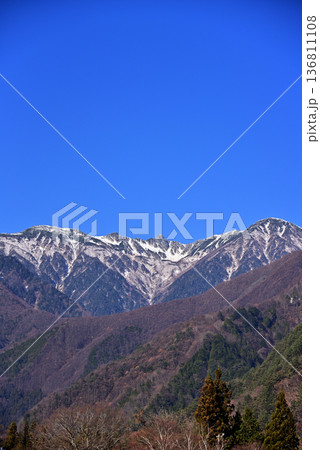 冬季從長野縣上伊那郡木所駒嶽山頂眺望北側(大谷入山、茶臼山等)