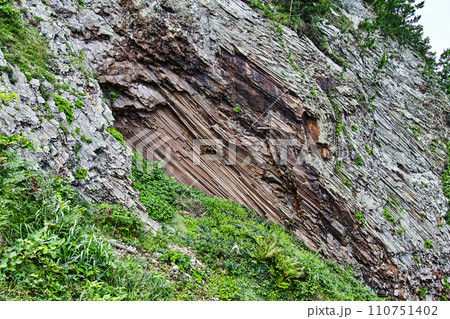 下北半島海岸的奇形岩石「岩掛岩」中看到的柱狀節理