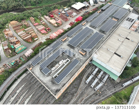 Solar panel on Smart city, Photovoltaic solar power system, eco green clean alternative saving energy.