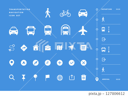 旅行圖示集 - 交通工具(飛機、新幹線、巴士、租車等)旅遊交通
