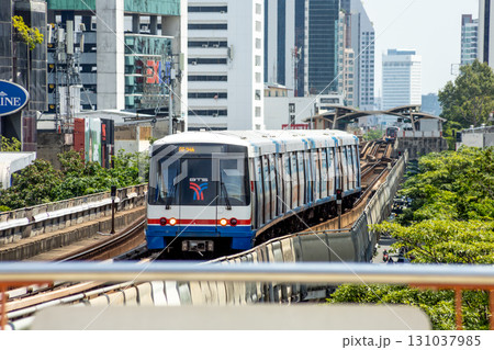 Bangkok, Thailand. January 21, 2025 : Mass Transit System, commonly known as BTS Skytrain. Railroad platform.