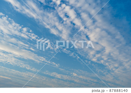 秋天雲彩條紋覆蓋藍天和白色雲彩
