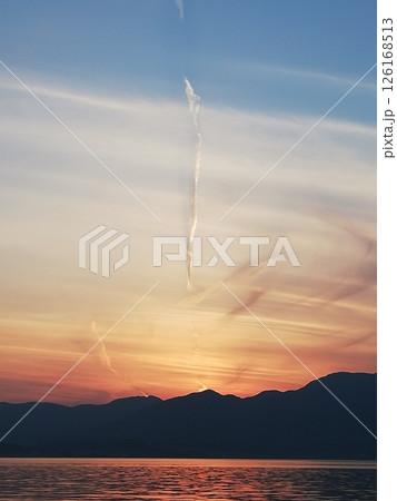 城市天空・夢幻般的藍色和粉紅色漸變日落和垂直地震云如軌跡(東京都千代田區)