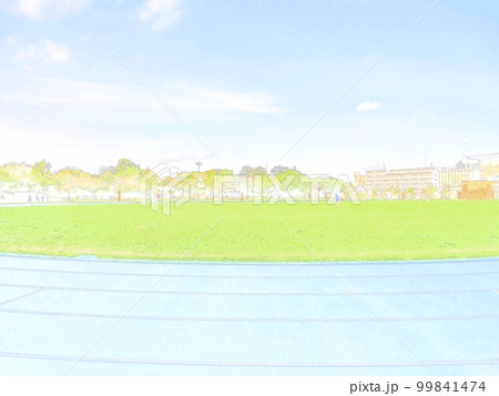 晴天的田徑場“藍色的跑道和草地”“千歲青葉公園”