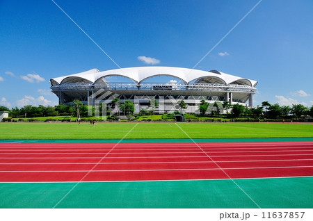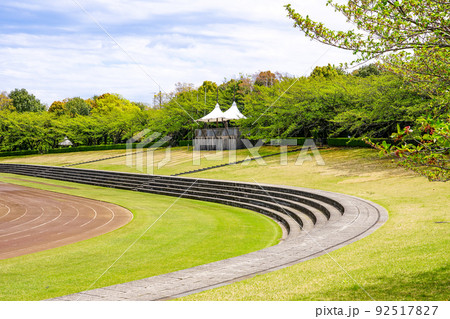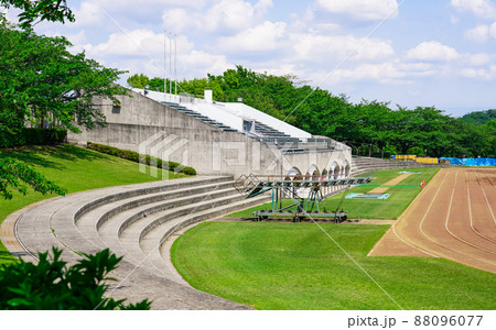 平和之森公園的田徑跑道和草坪。圖解照片。