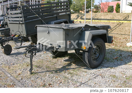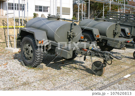 一輛大型 JGSDF 卡車拉著水箱拖車