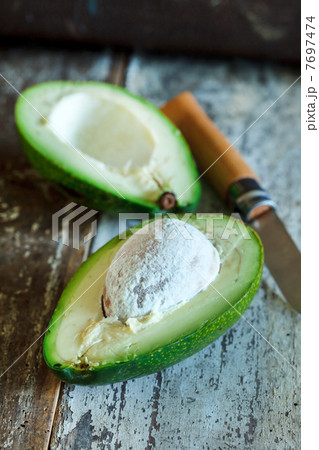 Smiling female worker in fruit sorting warehouse holding sliced avocado