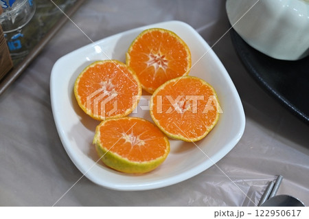 halved orange on a plate