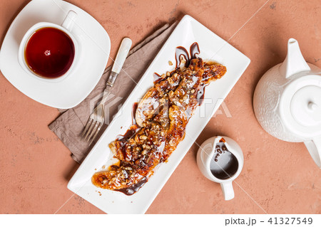 Grilled banana with chocolate sauce