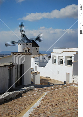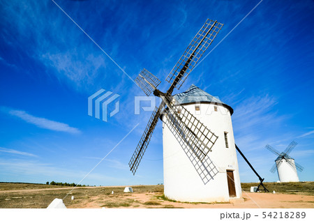 西班牙,拉曼查,藍天和白色風車