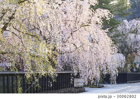 福島縣喜多方市中部線的春天的櫻花樹、垂枝櫻花