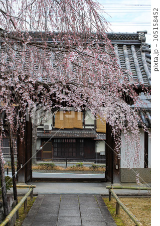 京都,上品蓮台寺,入口前盛開的垂枝櫻花樹