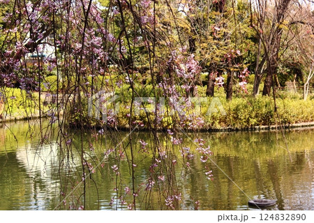 明勝寺池畔春天盛開的垂枝櫻花 (5)