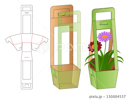 Printable Dieline Template for Flower Pot Packaging with Handle