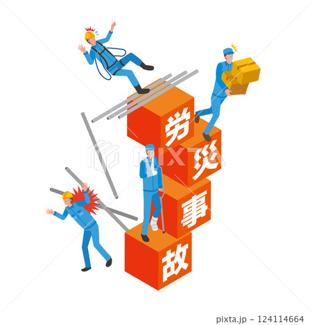 工廠或工地工人從高處墜落的插圖 | 不安全行為、不安全條件、墜落事故、墜落、工業事故