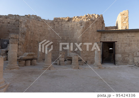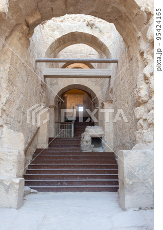 Mount Herodion and the ruins of the fortress of King Herod inside an artificial crater. The Judaean Desert, West Bank.