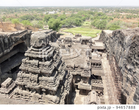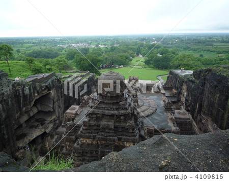 [印度] 從埃洛拉石窟右後方看到的凱拉薩納塔神廟及其遠處的景色