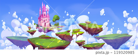 Fantasy castle on floating island in sky cartoon