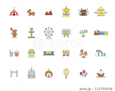 彩色主題樂園相關插畫圖示集