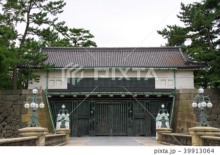 東京皇居外苑二重橋和伏見砲塔的城市景觀