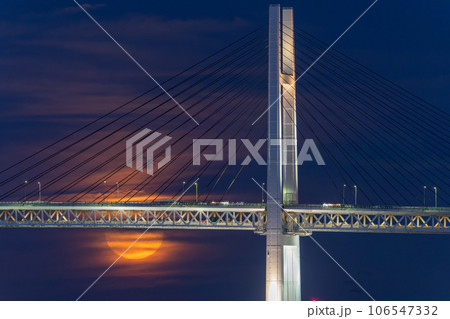[神奈川縣] 橫濱海灣大橋和超級月亮