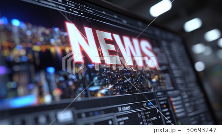 Digital screen displaying breaking news with vibrant city lights in the background at night