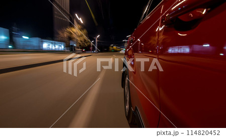 Drivelapse from side of car moving on a night avenue in city timelapse hyperlapse