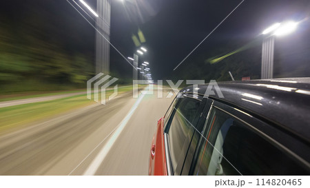 Drivelapse from Side of Car moving on a night highway timelapse hyperlapse