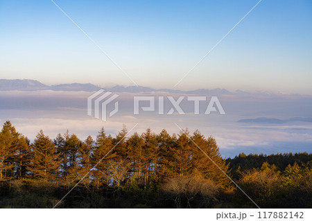 [雲海素材]秋天從高博奇高原看到的面向北阿爾卑斯山的雲海[長野縣]