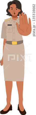 thai policewoman in professional uniform giving stop sign for traffic management and public security