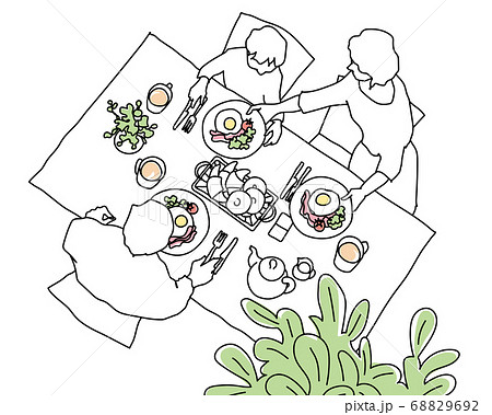 培根蛋(蛋餅)、米飯、味噌湯套餐。手繪水彩畫,描繪蛋料理。