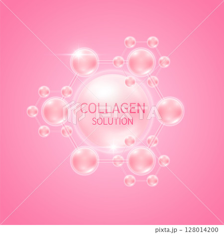 Collagen solution in molecules atom pink. For design cosmetics products. Vitamins complex from nature. Medical health care skin protection. 3D Vector EPS10.