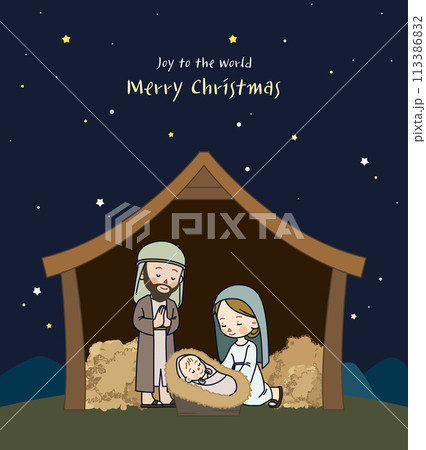 Mary Joseph and baby Jesus, Cute cartoon illustration Nativity of Jesus, birth of Jesus.
