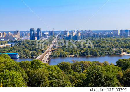 A road bridge connecting the right and left banks of the big city, Kyiv