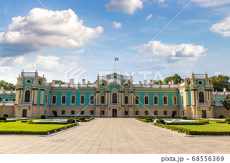 Kiev, Ukraine January 2, 2021: The ornate facade of an ancient building in the center of Kiev