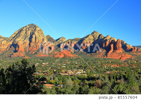 塞多納上城區的城市景觀,紅褐色的洛磯山脈聳立其上