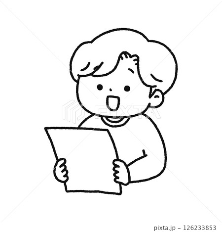 男孩在讀列印輸出 - 線條畫
