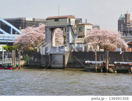 堺川西水閘與櫻花