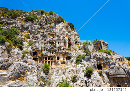 Necropolis of Lycian rock-cut tombs of the ancient city of Myra in Demre, Antalya Province, Turkey
