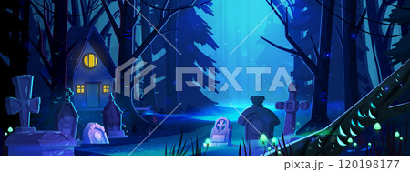 Spooky Halloween landscape - house near cemetery