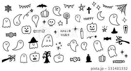 Simple and fun set of hand-drawn line art doodle icons for Halloween.. Vector Illustration