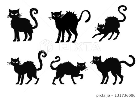Black Cat Scary Silhouette Collection. Spooky Halloween Animal Icons Vector Set.