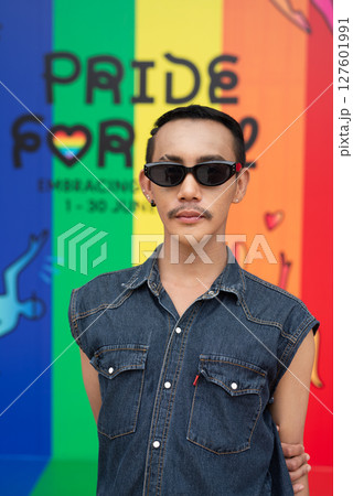 Empowering portrait of nonbinary genderfluid young Asian gay man