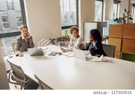 Diverse Businesswomen Collaborating Together in a Modern Office Setting for Success in Projects