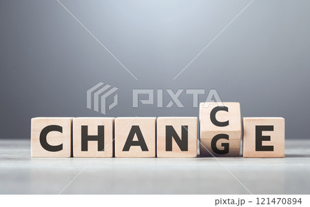 Top view of Adapt Change text on wooden blocks. Business adaption concept